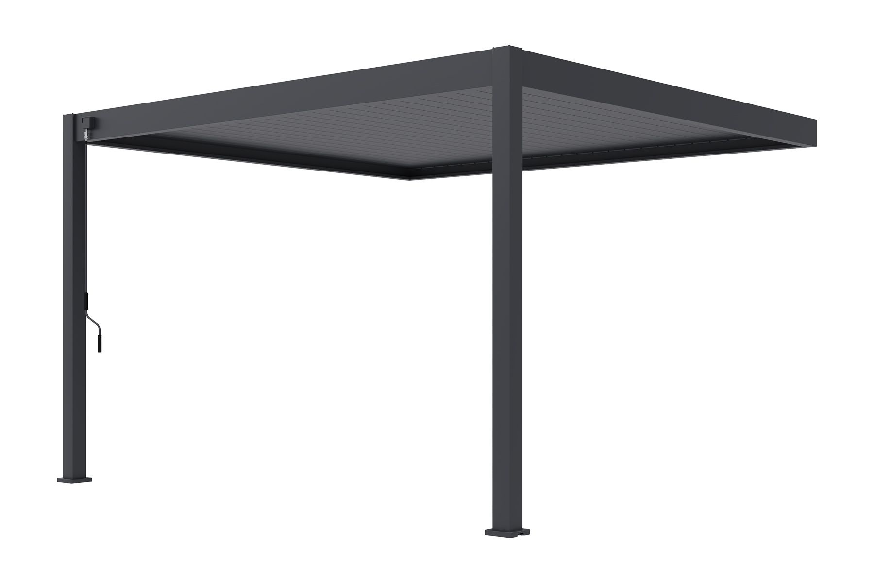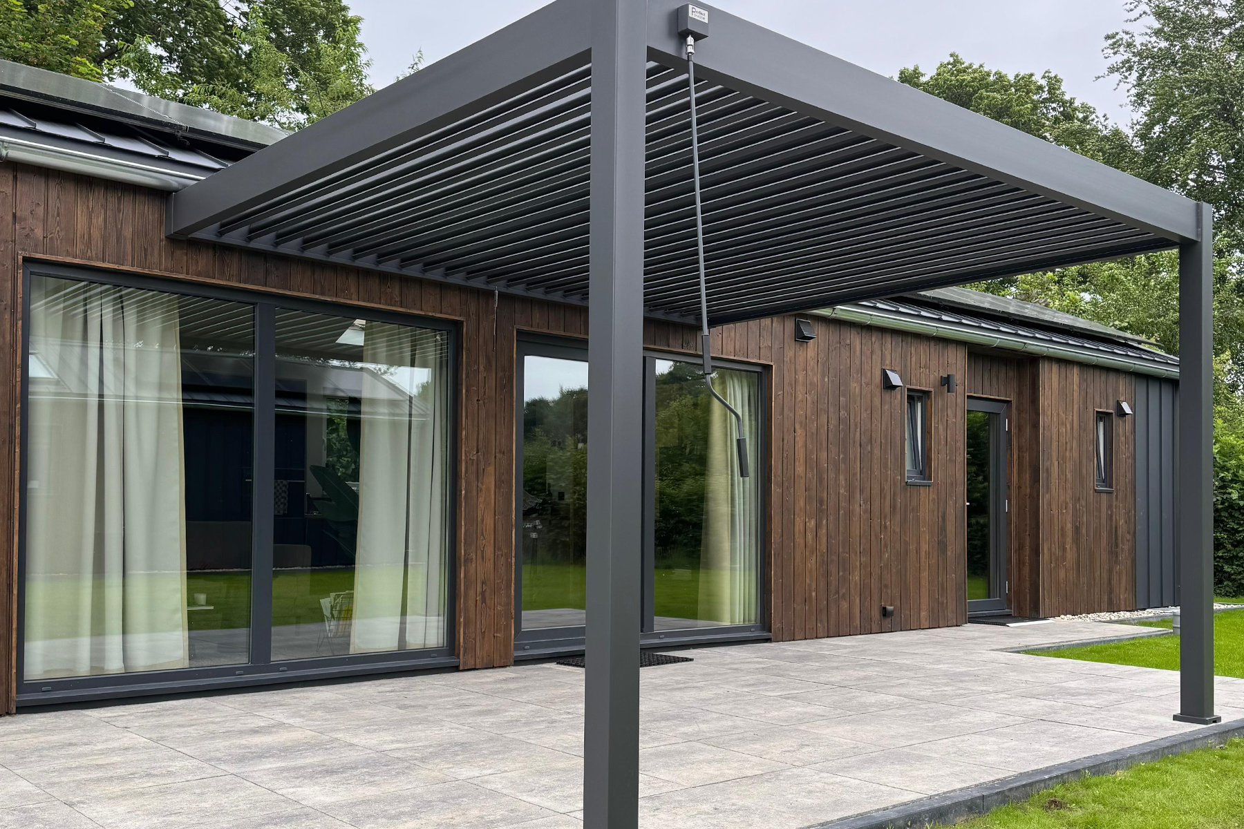 Die Advance Terrassenüberdachung (Wandmodell) ist die ideale Möglichkeit, Ihrer Unterkunft sofort mehr Komfort und Luxus zu verleihen. Dank des Aluminium-Lamellendachs, das bis zu 135 Grad geöffnet werden kann, bestimmen die Gäste selbst, wie viel Sonnenlicht und Belüftung sie wünschen. Geschlossene Lamellen machen die Überdachung vollständig wasserdicht. Die robuste Konstruktion und die integrierte Wasserableitung durch die Pfosten sorgen für eine langlebige und pflegeleichte Lösung.