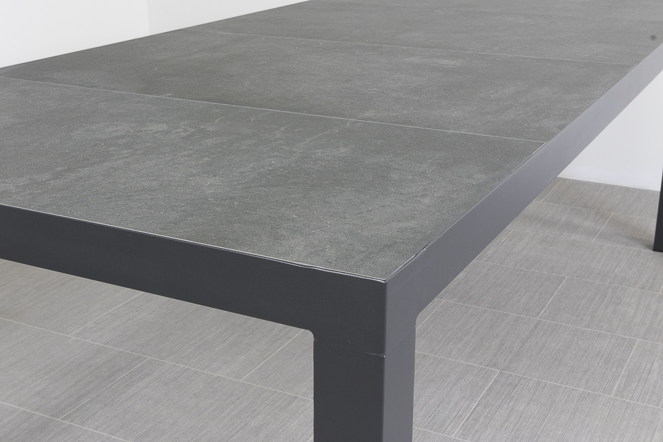 • Der Madino President Tisch hat eine Tischplatte aus Keramik. Diese starke Steinart ist kratzfest und pflegeleicht. Das Tischgestell besteht aus pulverbeschichtetem Aluminium.