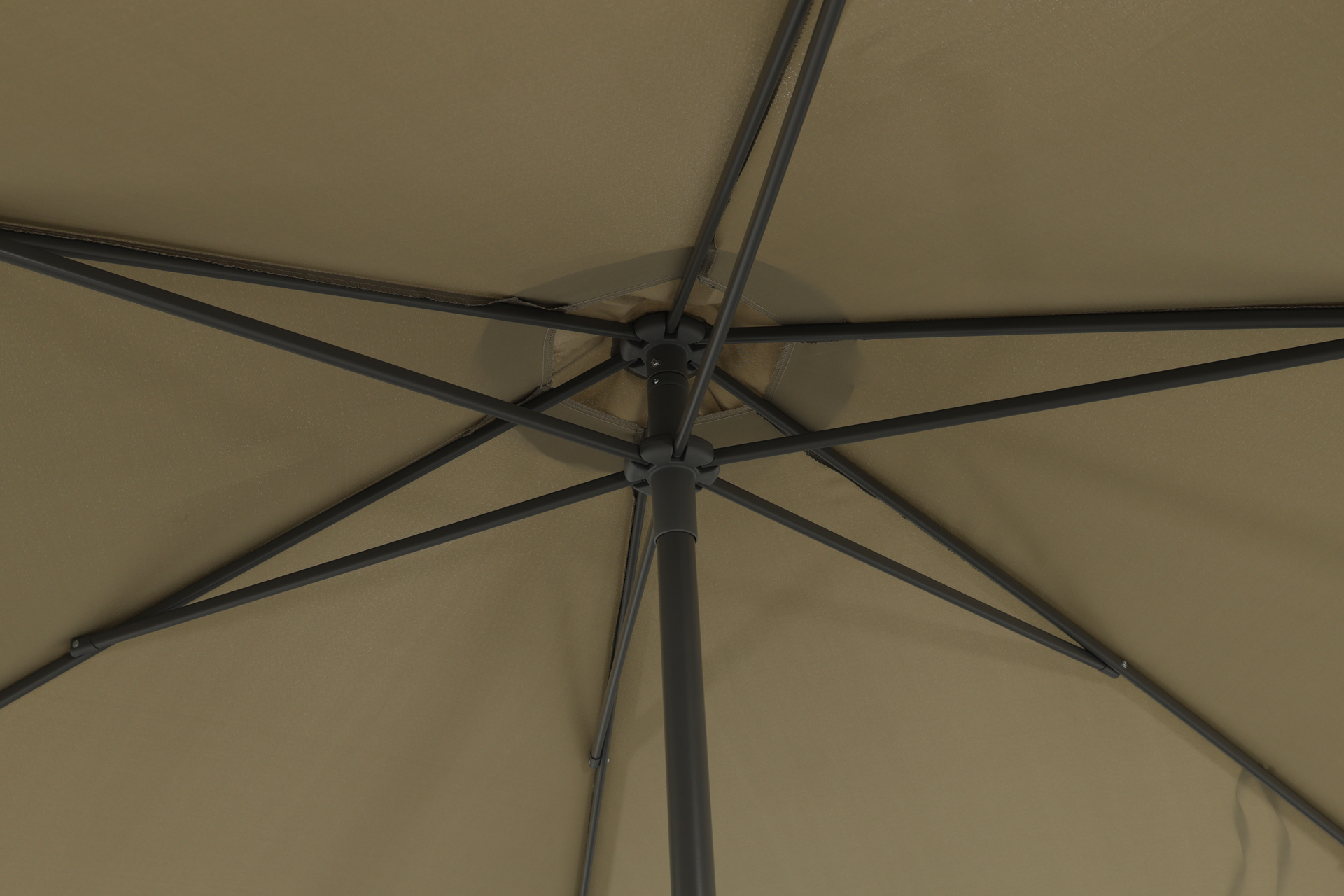Im Gegensatz zu vielen anderen Sonnenschirmen verfügt der Sonnenschirm Miami nicht über einen Drehmechanismus, sondern über einen Hochstellmechanismus. Stellen Sie sich einen Regenschirm vor, der aufgeklappt ist. Der Sonnenschirm ist mit einem Polyester-Sonnenschirmtuch und sechs Rippen ausgestattet. Dieser Sonnenschirm ist äußerst preisgünstig und für die Freizeitbranche geeignet