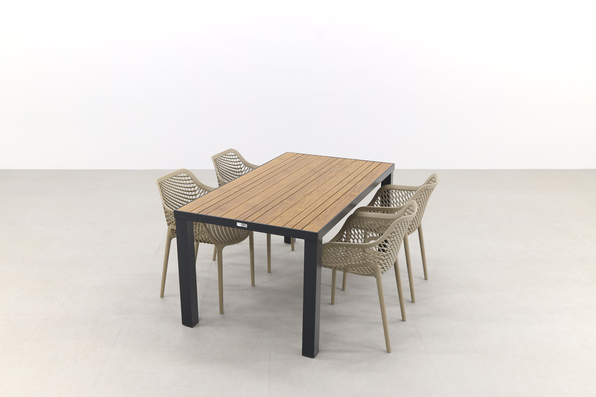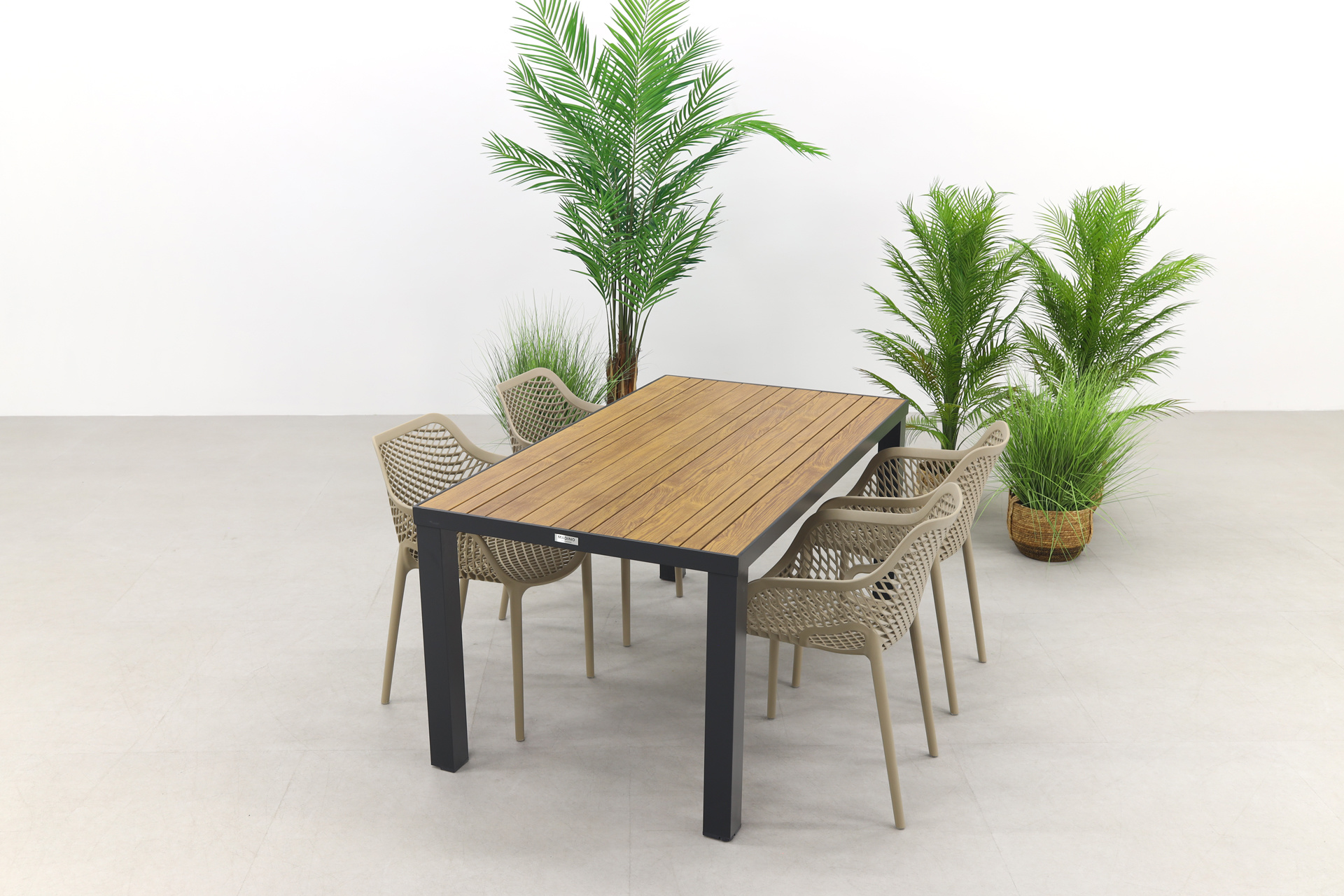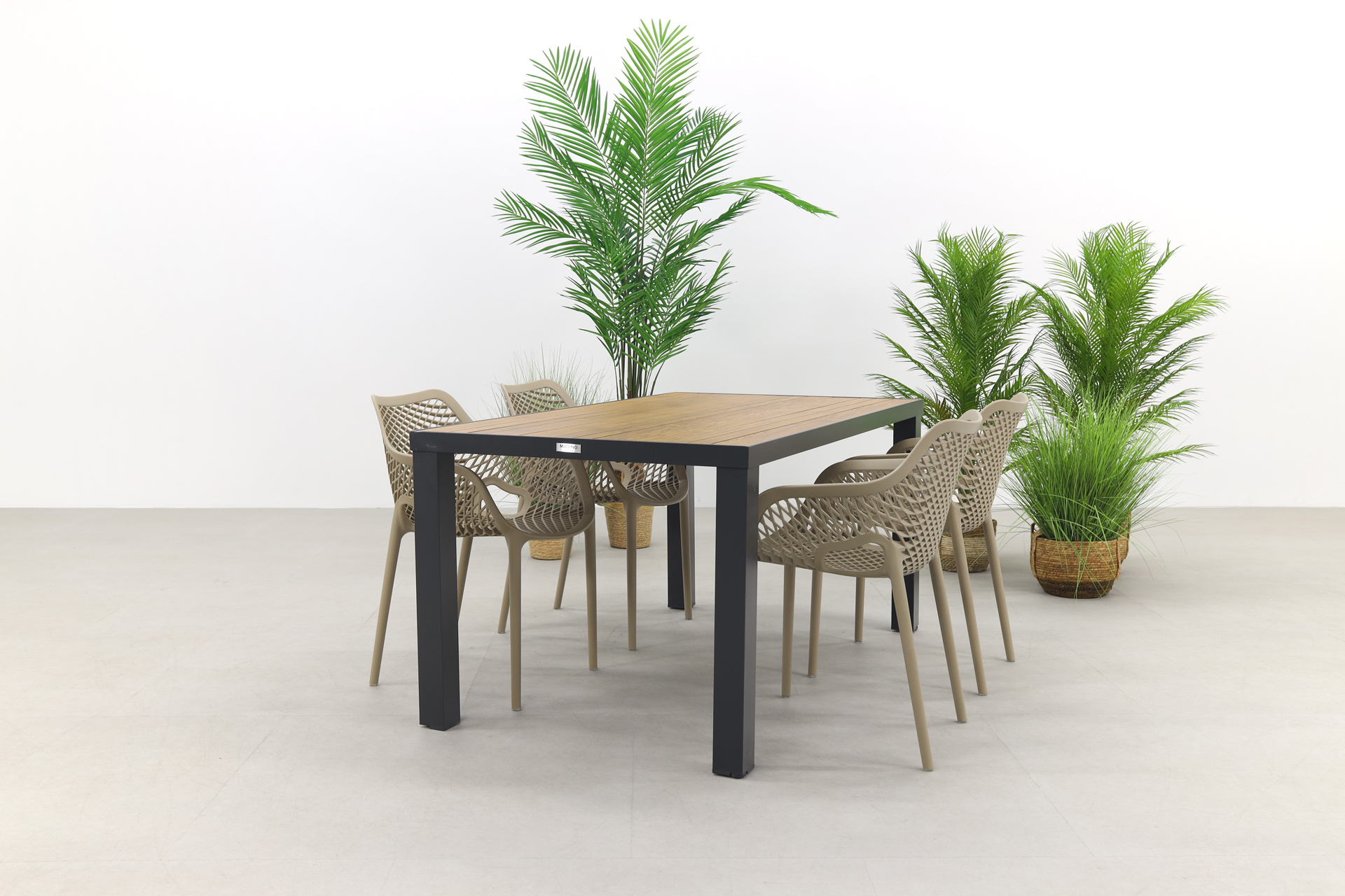 This garden set consists of 4 pieces of Air patio chair taupe combined with terrace table Colma