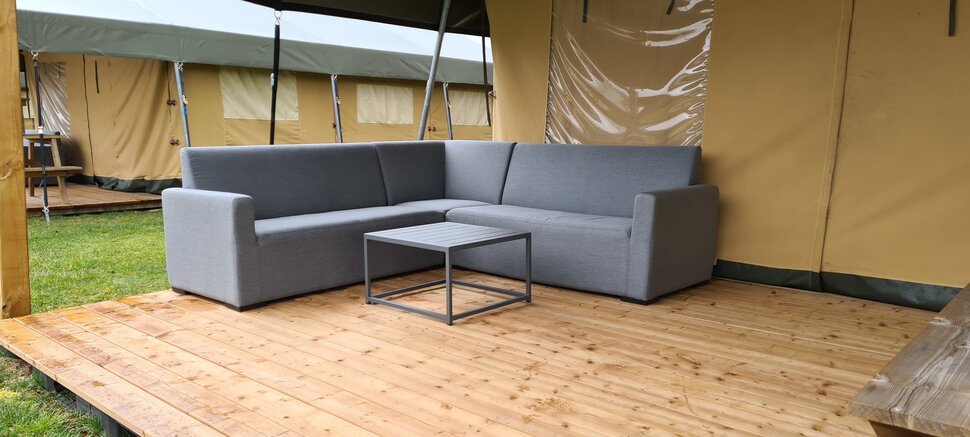Kampeerdorp de Zandstuve is giving the outdoor experience of its accommodations a true upgrade. Luxury lounge sets have been placed at the Glamping tents. These beautiful, weatherproof lounge sets are also found on the terrace of the pizzeria. Ideal, as the sofa is water and dirt-repellent. Any dirt on the sofa can be easily wiped off thanks to the Sunbrella fabric.