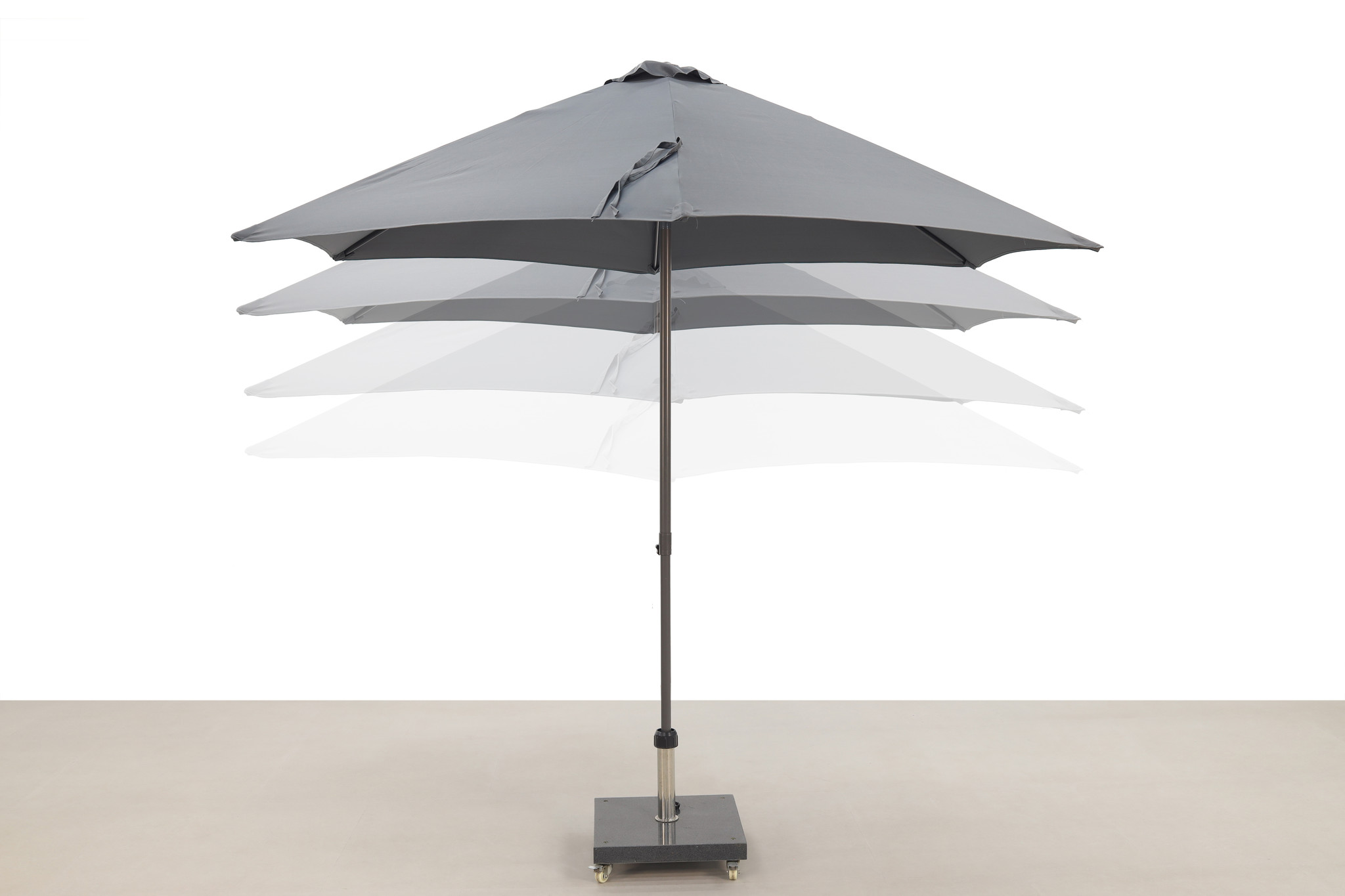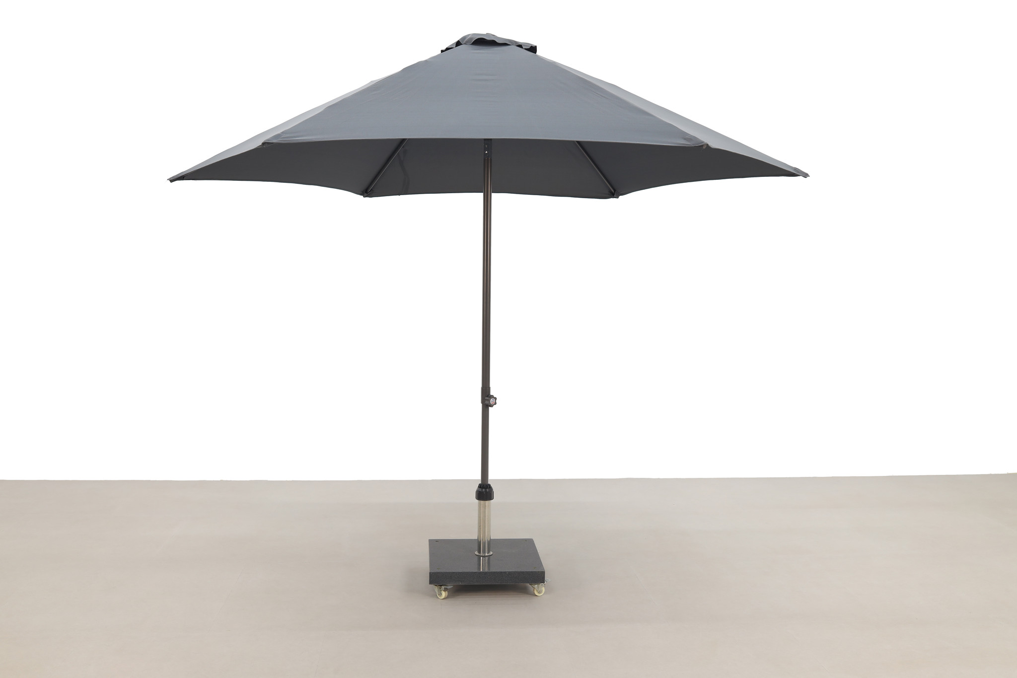Unlike many other parasols, the Miami parasol does not have a rotating mechanism but a push-up mechanism. Think of an umbrella that is unfolded. The parasol is equipped with a polyester parasol cloth and six ribs. This parasol is extremely competitively priced and suitable for the recreation industry