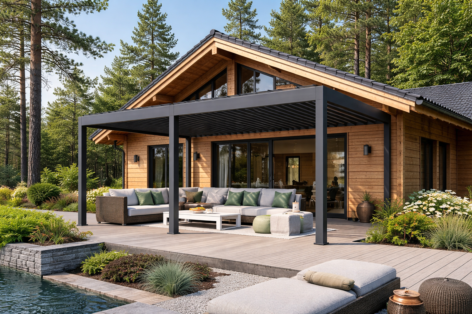 The perfect patio cover for the terrace at the accommodations. It is not only an ideal shading solution, but also gives the appearance of the holiday home a beautiful upgrade. The roof of the Premium canopy is adjustable and can open up to 135 degrees. The roof is also 100% waterproof. The water runs down through the legs via an integrated water drain.