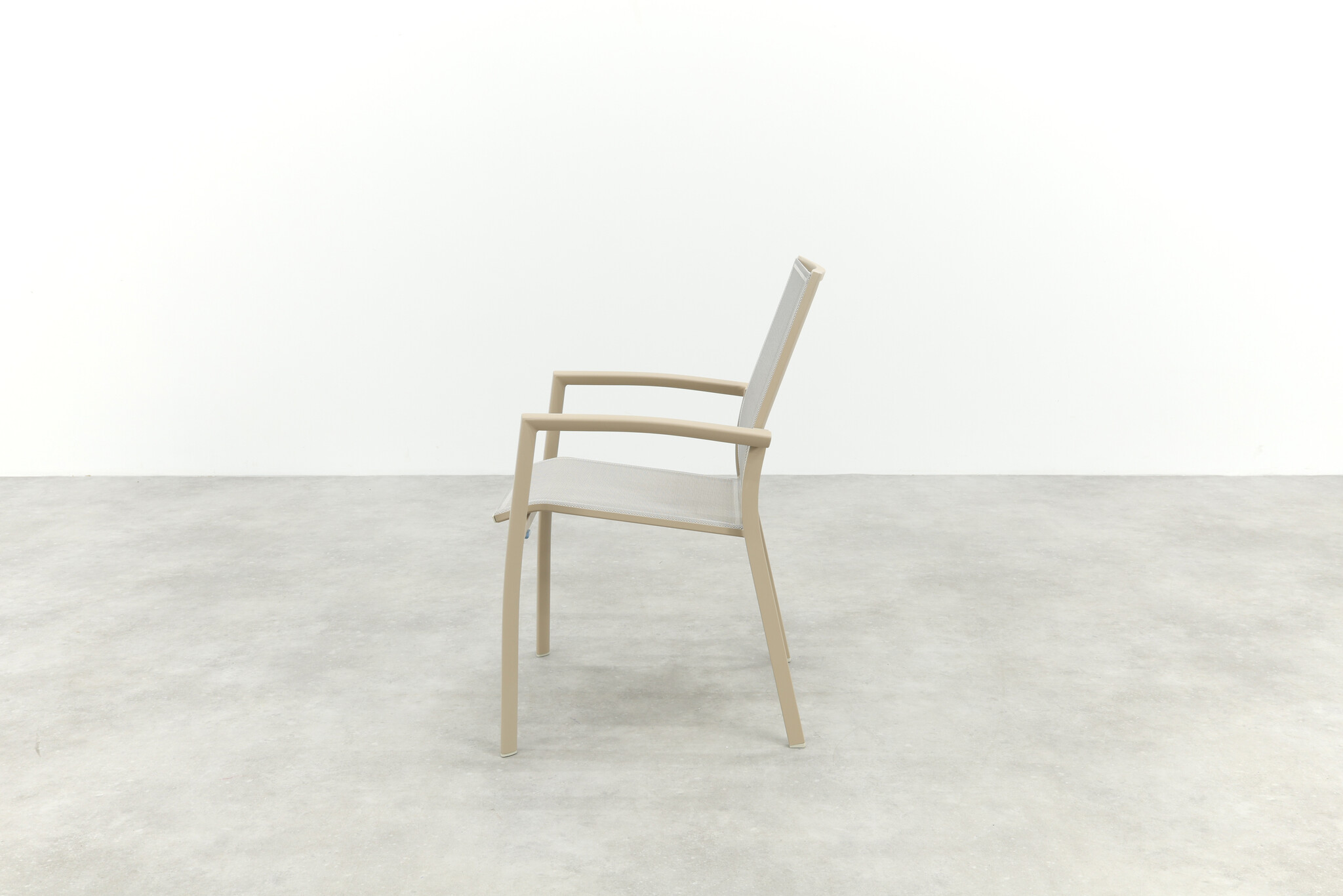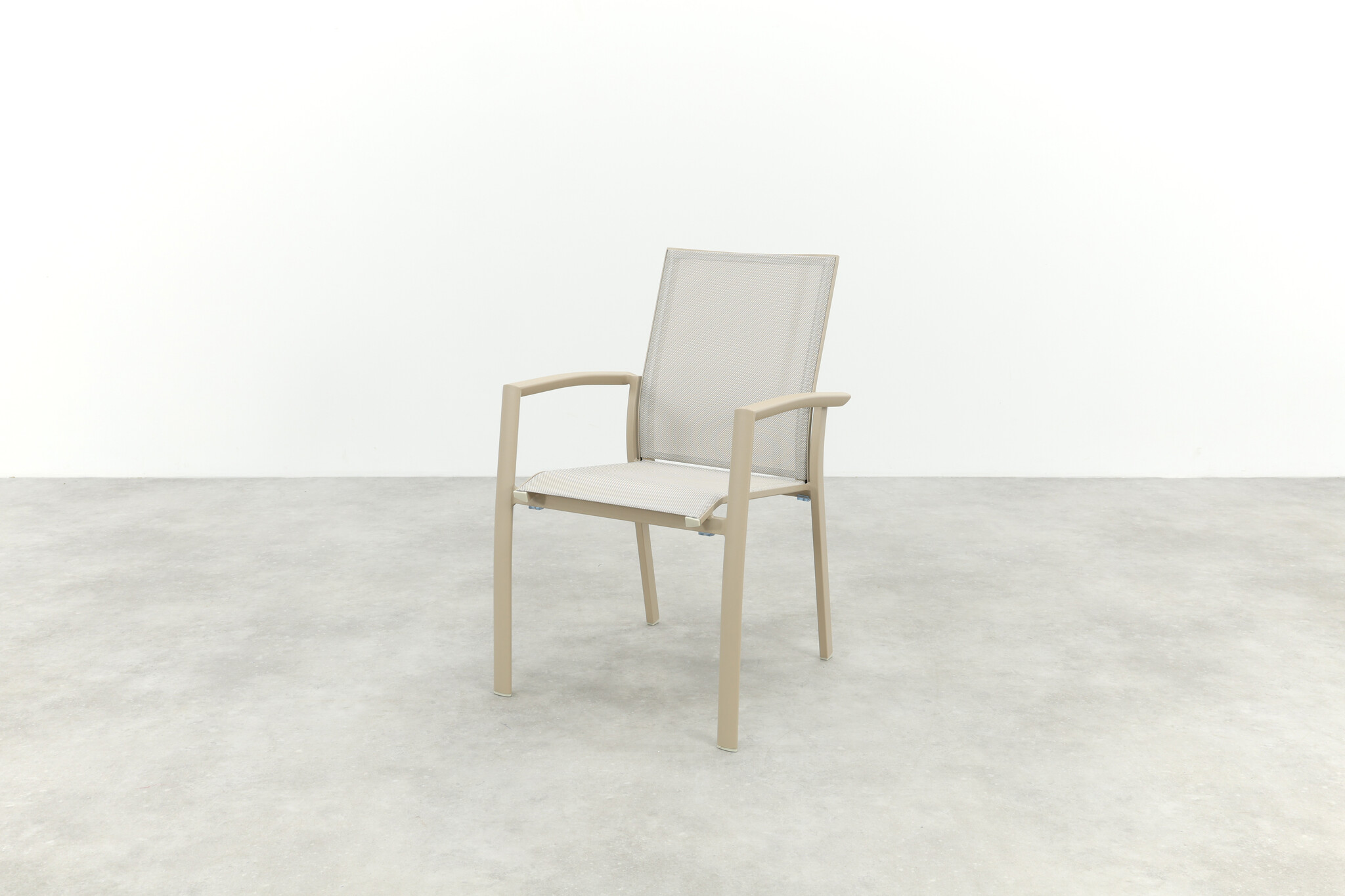 The Premium patio chair is a lightweight garden chair that is also stackable. The Tampa is a beautiful garden chair with a modern design. The sturdy aluminum frame has a protective coating in anthracite color. The seat is made of sturdy textilene and provides sufficient seating comfort. The armrests are streamlined with the frame and provide extra comfort. Due to its modern appearance, the Tampa patio chair can be combined with many tables.