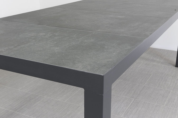 • The Madino President table has a ceramic table top. This strong type of stone is scratch-resistant and low-maintenance. The table base is made of powder-coated aluminum.