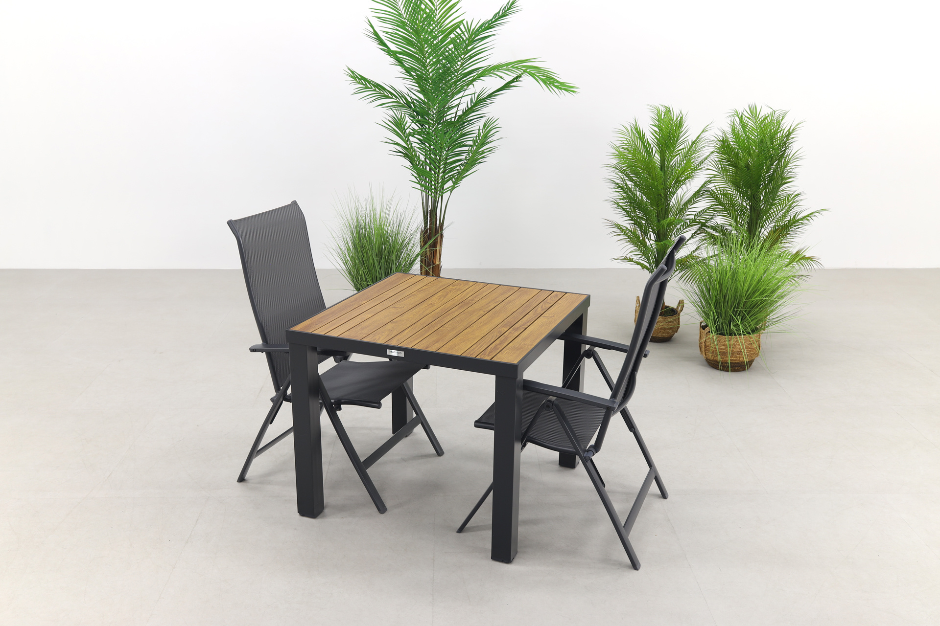 ✓ 1x table Colma aspect bois 90x90cm - anthracite