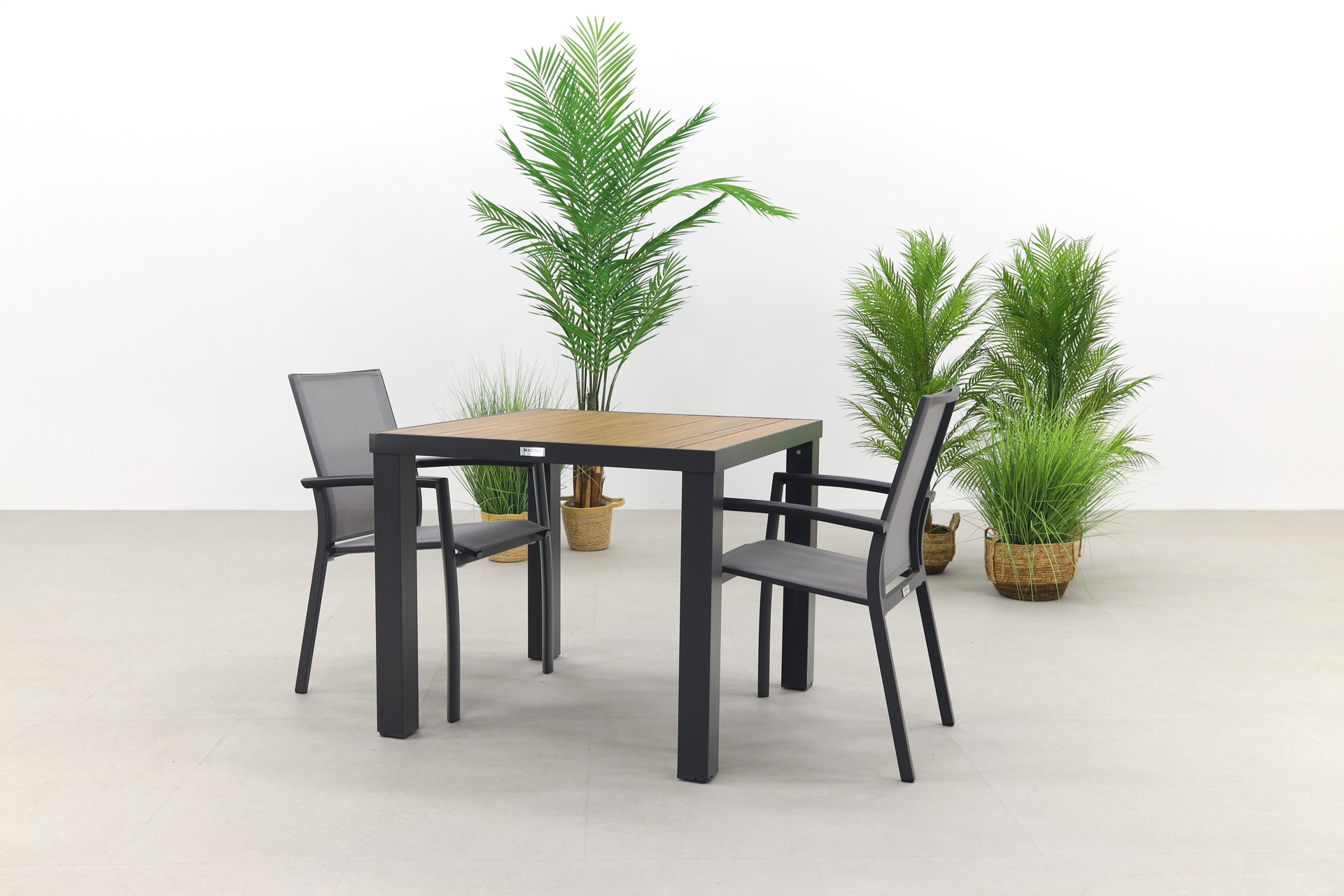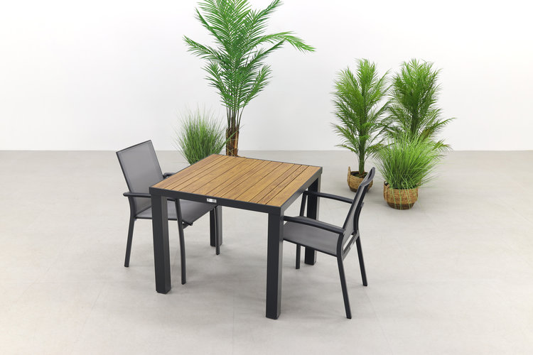 ✓ 1x table Colma aspect bois 90x90cm - anthracite