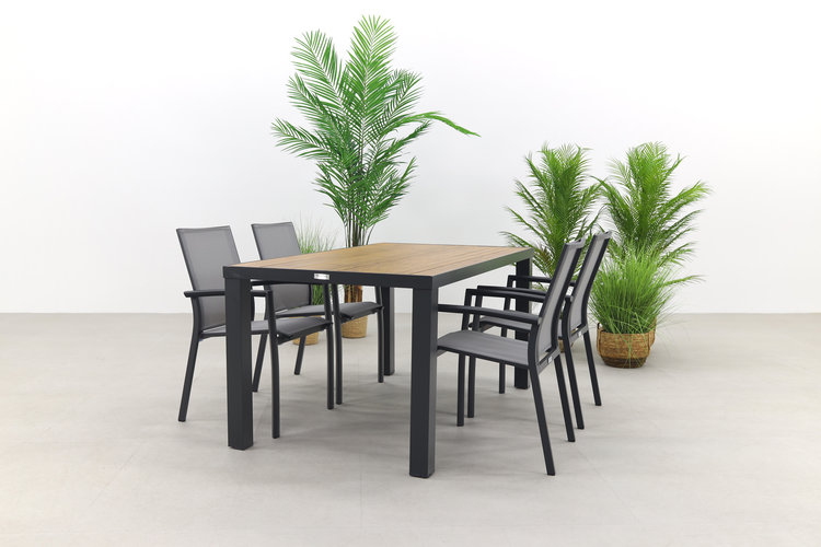 ✓ 1x table Colma aspect bois 160x90cm - anthracite