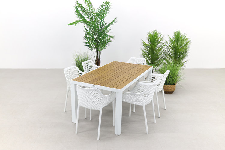 6 personnes | Ensemble de terrasse Colma blanc - Chaise empilable Air