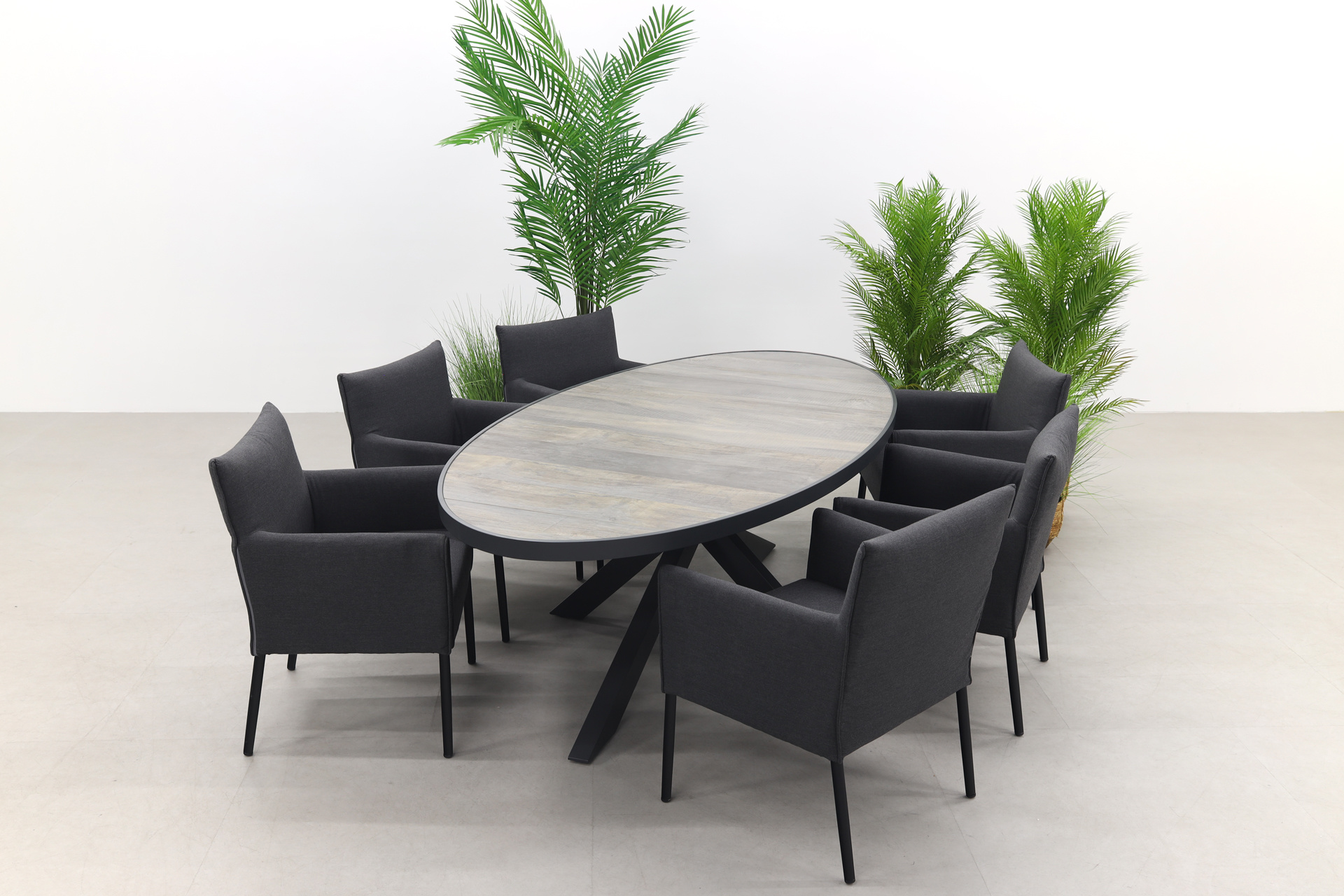 ✓ 1x Table ovale Silva - Céramique/Anthracite