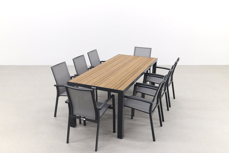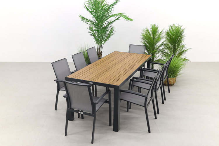 ✓ 1x table Colma aspect bois 210x90cm - anthracite