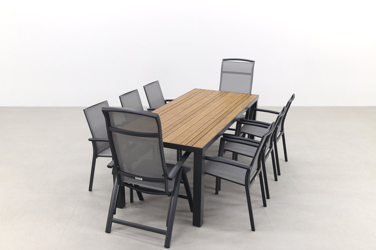 ✓ 1x table Colma aspect bois 210x90cm - anthracite
