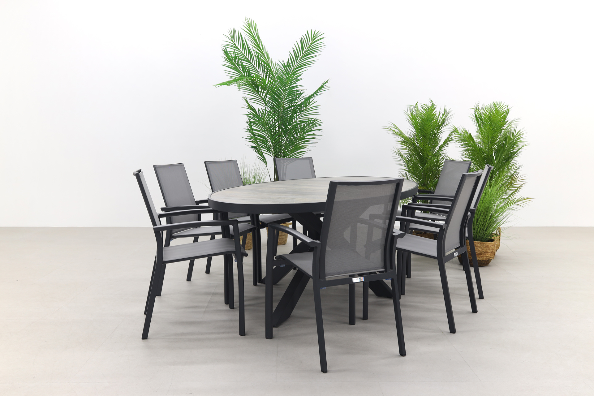 8 personnes | Ensemble de terrasse Silva - Chaise empilable premium