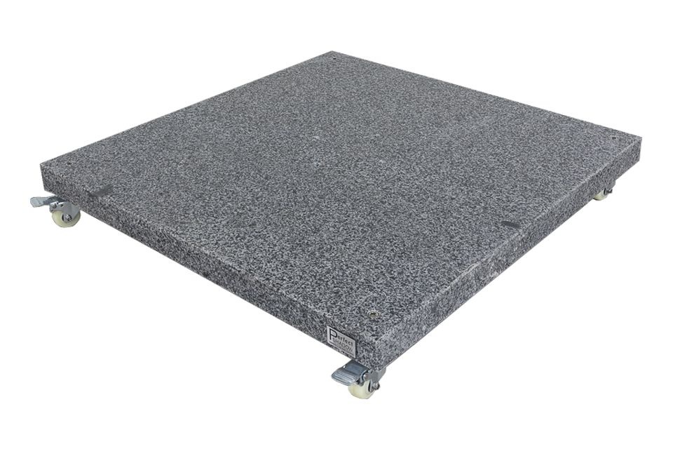 Le pied du parasol Madrid pèse 90 kilos et est en granit. La qualité du granit garantit une résistance absolue aux intempéries et également un aspect esthétique. Le pied du parasol est facile à déplacer grâce à ses quatre roulettes.