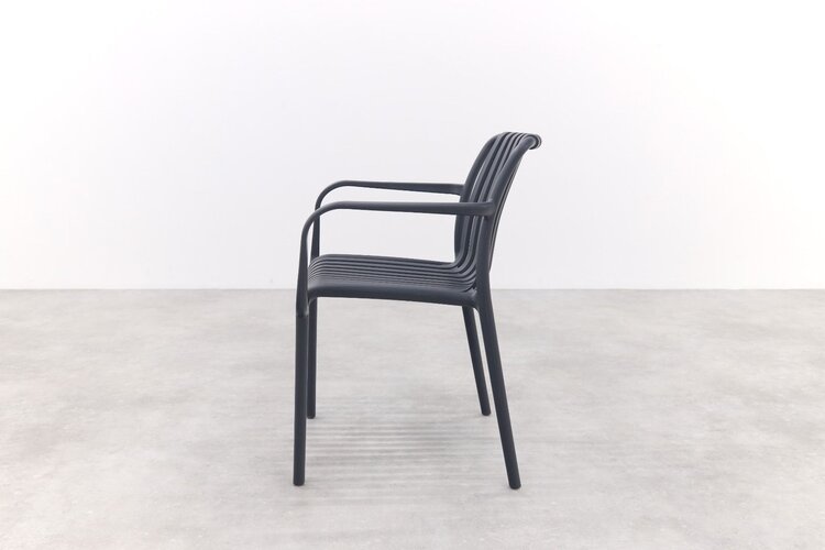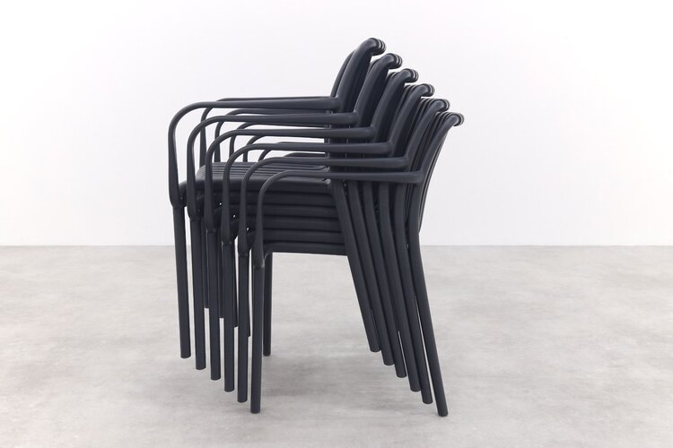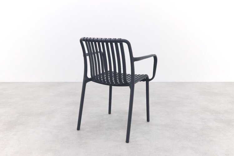 La salle à manger Stripe est une belle chaise au design moderne. La chaise de patio à rayures est résistante à la saleté et aux intempéries. Grâce à sa structure ouverte, la chaise résiste également aux vents violents. De plus, la chaise ne nécessite aucun entretien et est empilable. La chaise est disponible dans de nombreuses couleurs et également en chaise longue.