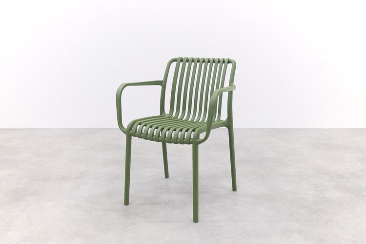 La salle à manger Stripe est une belle chaise au design moderne. La chaise de patio à rayures est résistante à la saleté et aux intempéries. Grâce à sa structure ouverte, la chaise résiste également aux vents violents. De plus, la chaise ne nécessite aucun entretien et est empilable. La chaise est disponible dans de nombreuses couleurs et également en chaise longue.