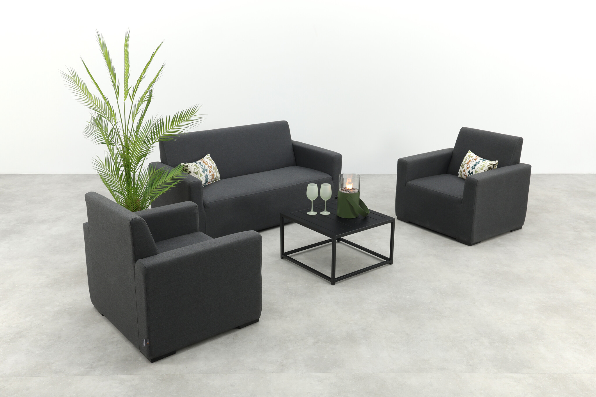 Een relaxte loungeset voor 4 personen die het hele jaar door buiten kan blijven staan. Dankzij de Sunbrella stof is de bank niet alleen weerbestendig, maar ook bestand tegen chloor en vuil. De Odeon loungeset is voorzien van een sterk aluminium binnenframe en kan tegen intensief gebruik. Op de Sunbrella stof zit een garantietermijn van 5 jaar.
